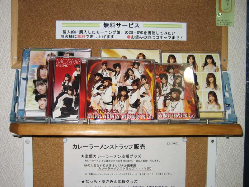 展示ディスプレイの上段に展示してあるモーニング娘。のCD・DVDを